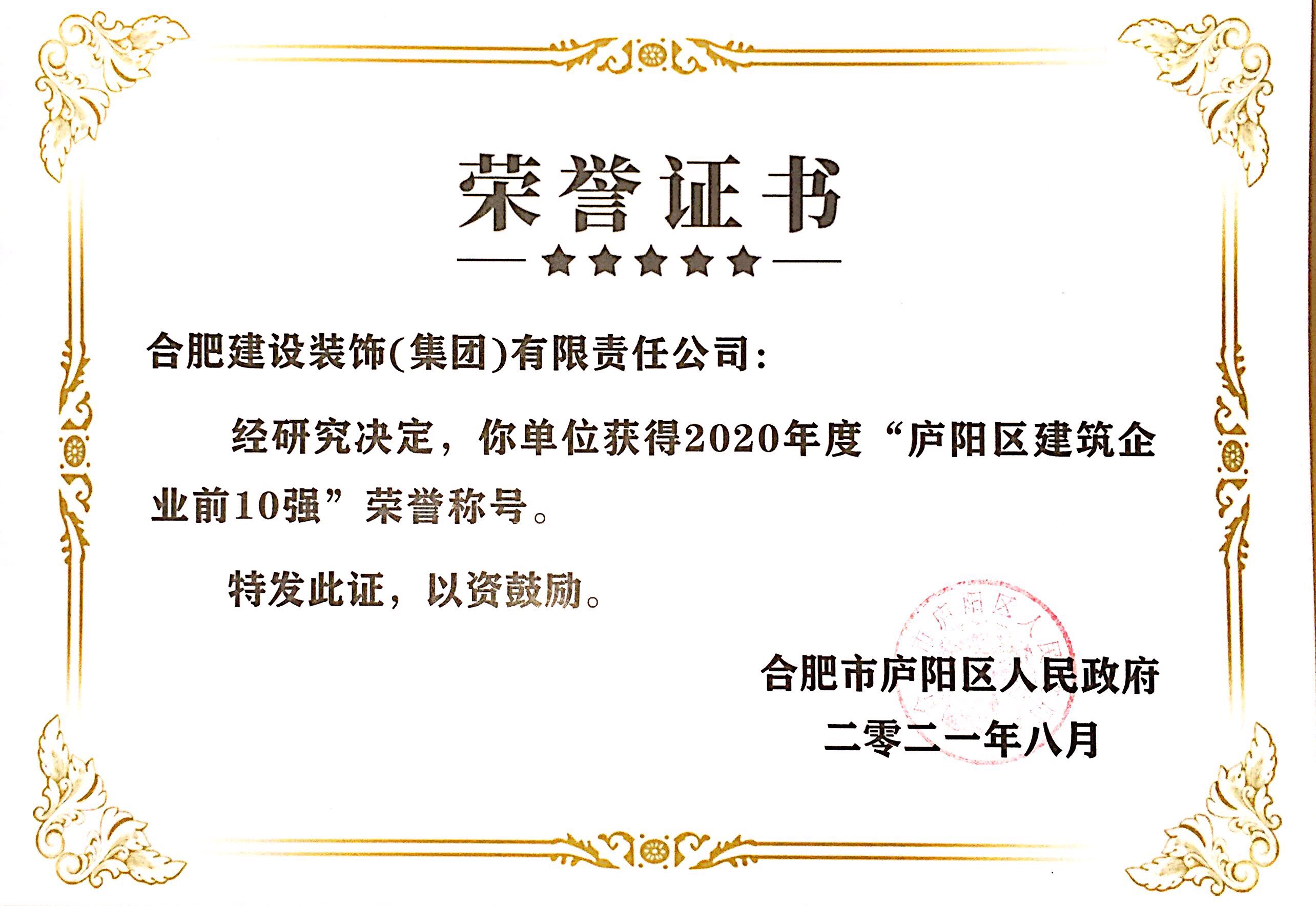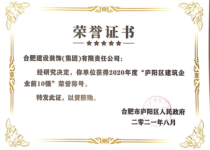 >2020年度庐阳区建筑企业前10强